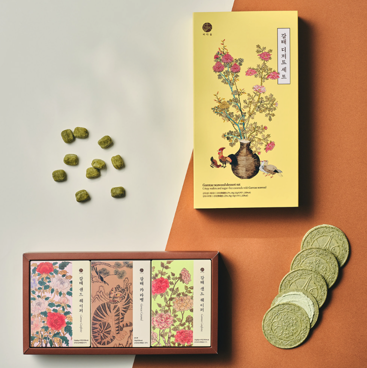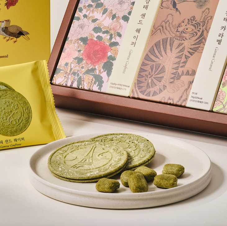 겨울 바다에서만 만날 수 있는 귀한 자연산 감태로 만든 프리미엄 디저트 선물세트예요. 바삭한 감태 샌드 웨이퍼와 무설탕 감태 카라멜을 한데 담아, 감태 특유의 쌉싸름한 풍미와 달콤함이 만나는 특별한 맛을 선사해요. 한국 전통 민화를 담은 고급스러운 패키지로, 감사와 답례, 고국의 소중한 분께 드리기에 더없이 좋은 선물이에요.