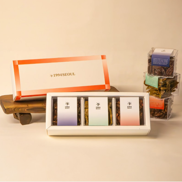 선물세트 구성: 피칸정과, 말차 메밀 마작과, 호두정과로 구성됩니다.