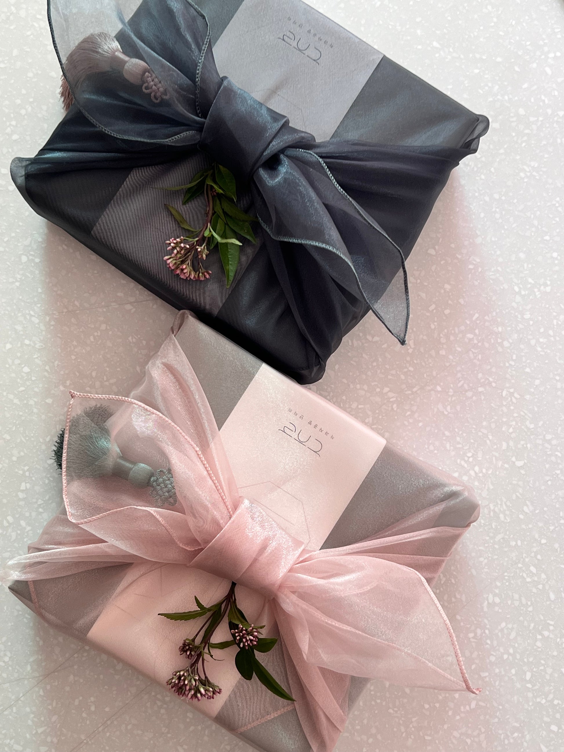 고급스런 선물박스에 담은 후 또 한 번 보자기 포장돼요.