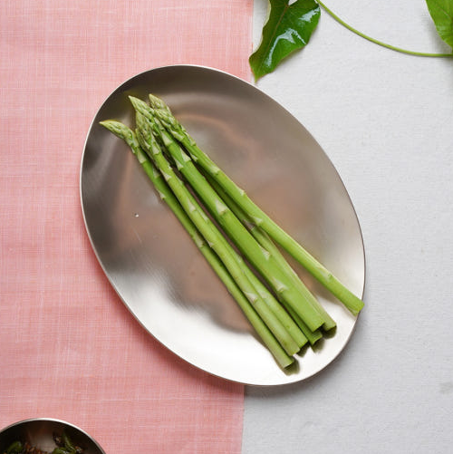 Introducing a traditional Bangjja yugi (Korean brassware) half-moon plate, perfect for serving a variety of dishes. Whether it's Western cuisine, Korean food, or desserts, this oval-shaped half-moon plate will elevate your table setting with elegance. Designed to enhance both the beauty and flavor of your meals, this plate transforms everyday dining into special moments.