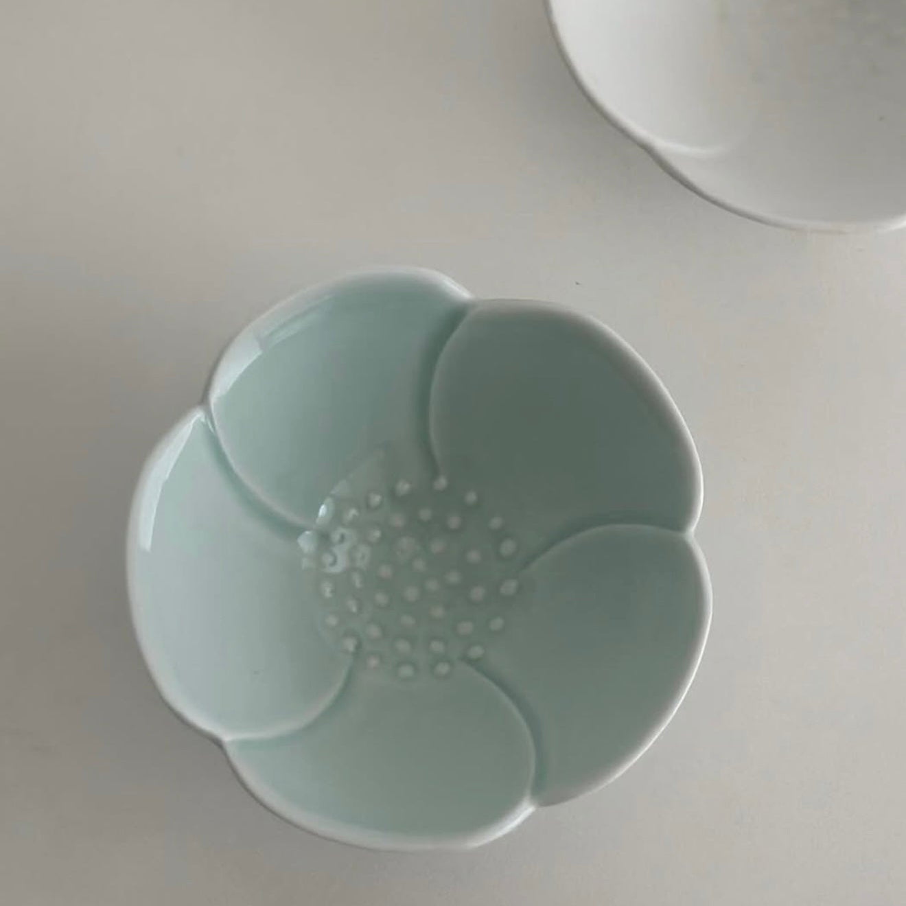 심스의 동백꽃 잔은 고려청자의 은은한 옥빛과 정제된 곡선미를 담은 작은 잔이에요. 손으로 빚은 형태 위에 동백 봉오리 문양이 새겨져, 잔을 기울일 때마다 빛과 그림자가 고요히 어우러지지요.