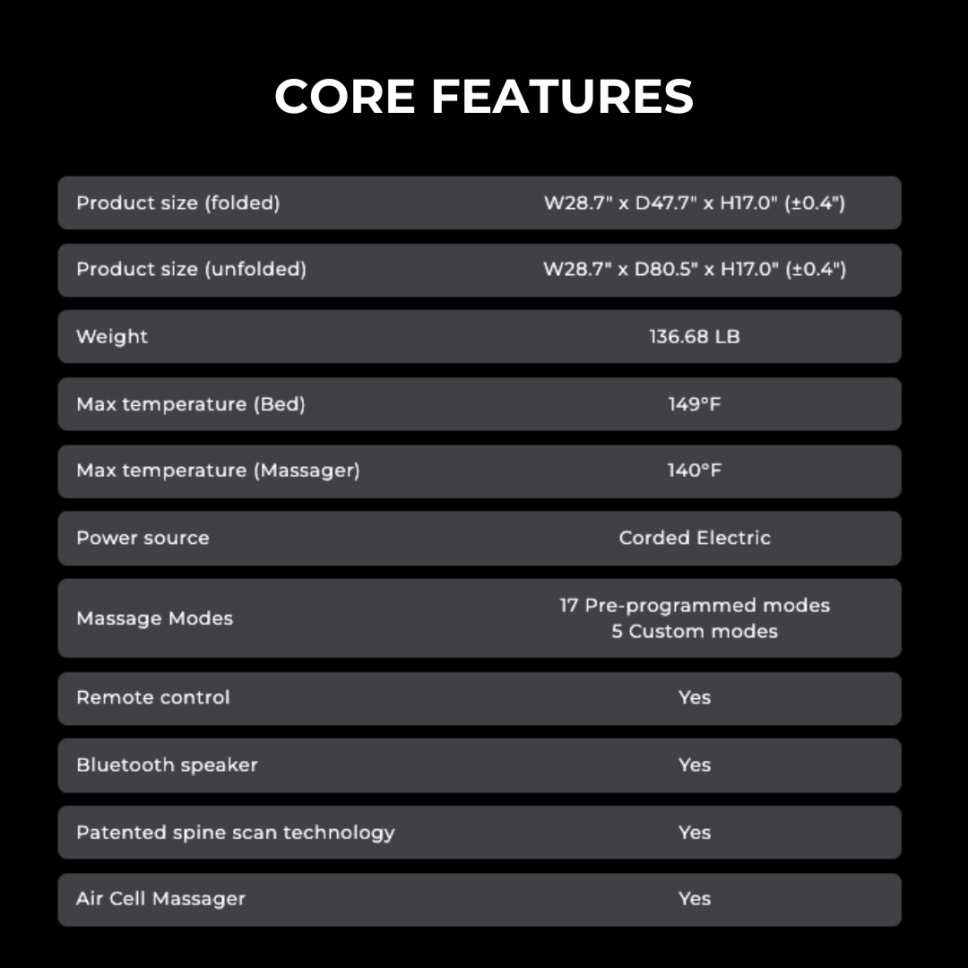 Not in the mood for the same massage every day? The V6 offers 17 pre-programmed modes and 5 customizable options, allowing you to choose the perfect intensity and technique to suit your body’s needs. Use the Master Mode to focus on specific vertebrae for targeted relief, or let the system work its magic from head to toe.