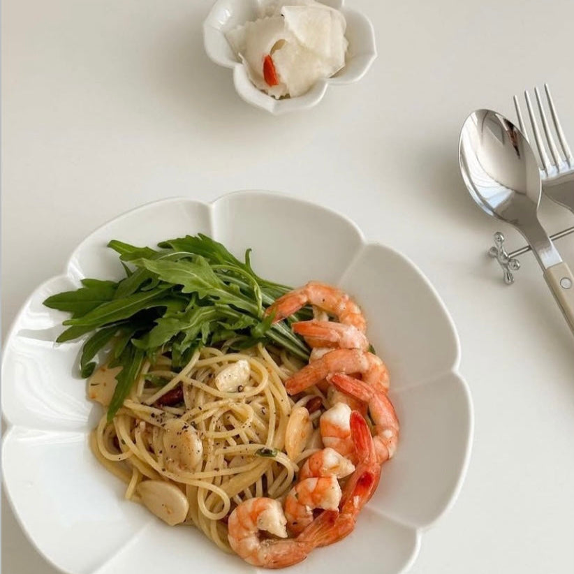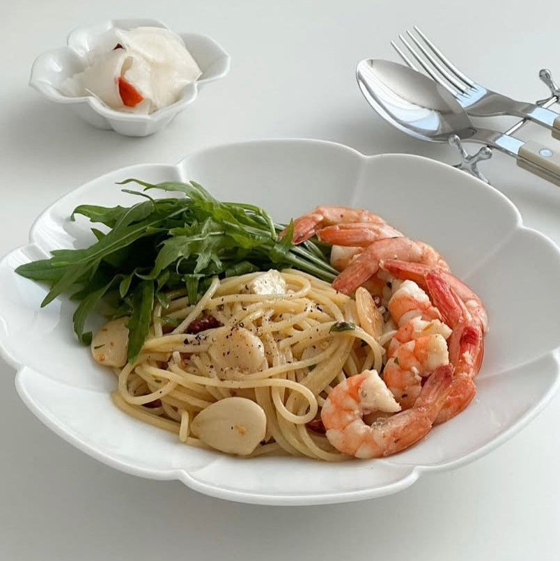 메인요리를 담기에 적절한 사이즈입니다. 39잎 국화꽃 쉐입과 8개의 잎을가진 꽃의 실루엣을 가진 메인 플레이트로 하루 식사의 마지막을 따뜻하게 물들여보세요.