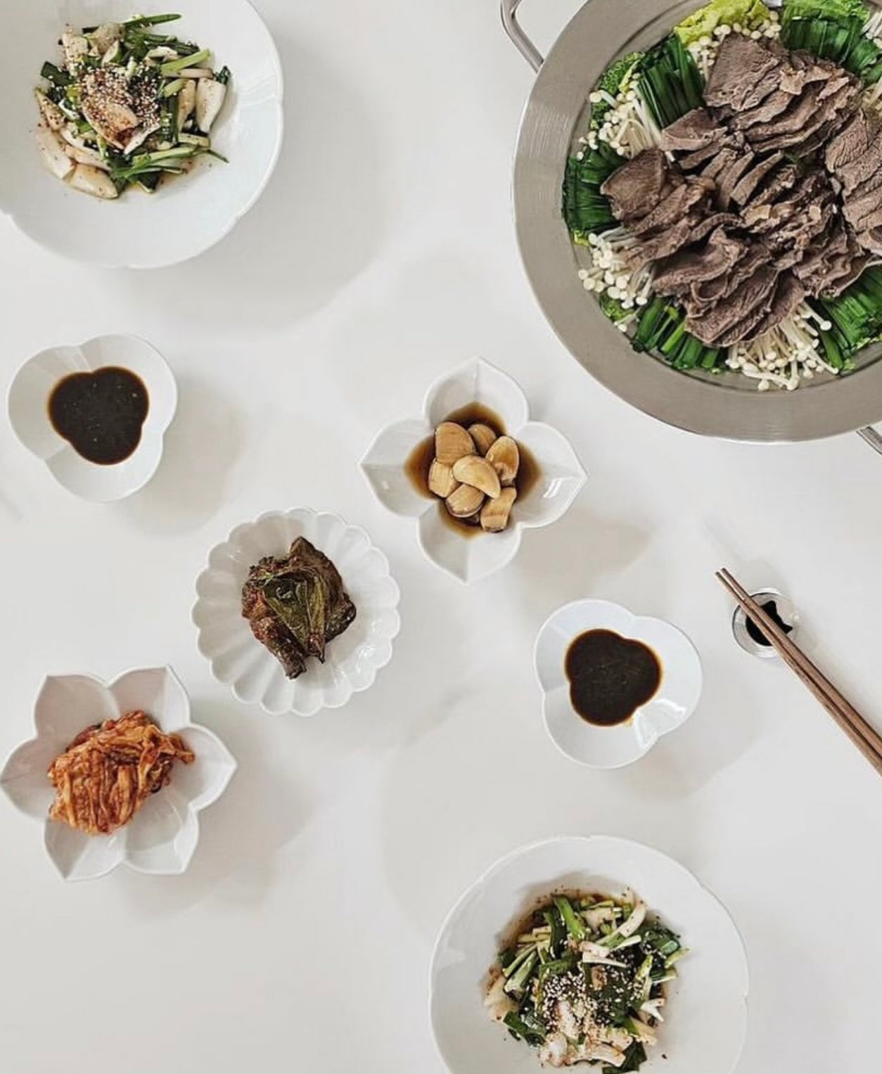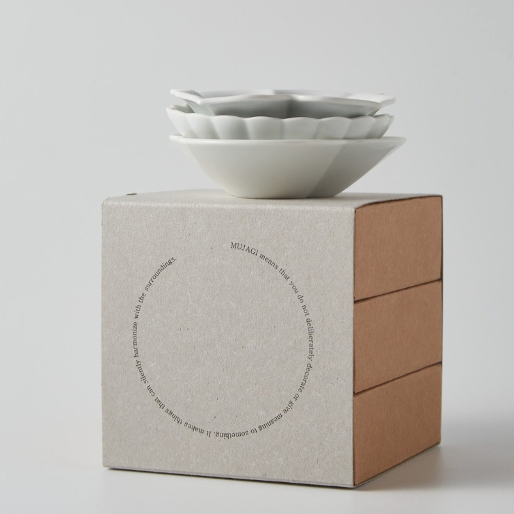 Mujagi bowls are made in Icheon, Gyeonggi-do, which is a representative pottery production area in Korea. The production process of Mujagi is simple but special. First, clay is prepared to become the product with high-purity white clay that has been filtered of impurities. Then, it takes shape through the hands of Mujagi artisans. After that, it is born as clean pottery through two firing procedures. The pottery by the artist Sim Bo-geun, who uses flowers on the roadside as a motif, adds detail to the clear and plain white porcelain, filling the daily tabletop with small happiness.