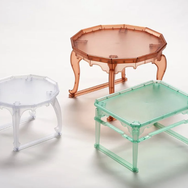 전통과 현대의 조화—하지훈 작가의 나주 소반은 전통 독상을 투명한 폴리카보네이트 소재로 재해석했습니다. 한국 기와지붕에서 영감을 받은 커버가 함께하면, 이 테이블은 감각적인 디자인 오브제로 완성됩니다.