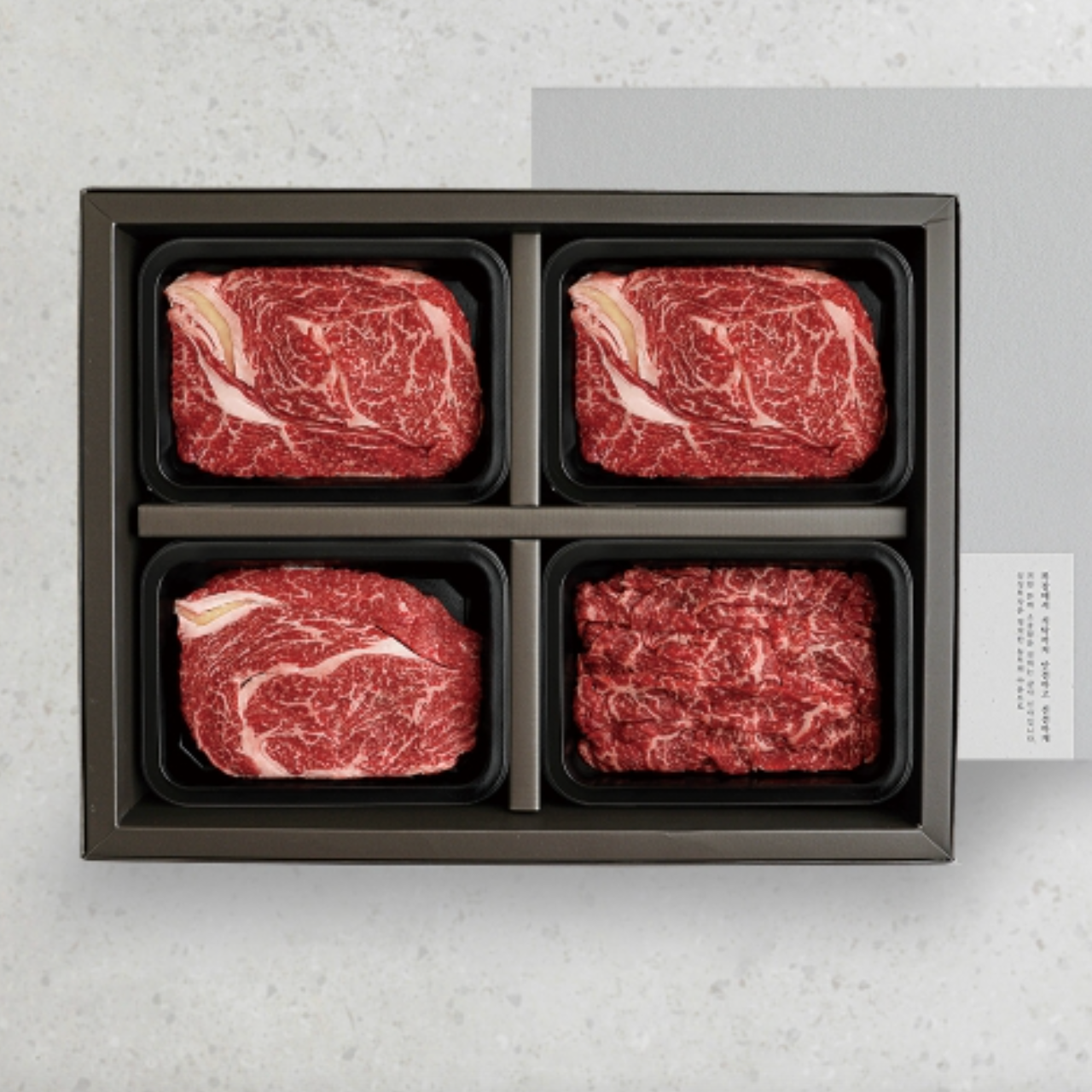 - 한우 등심 (구이용) 200g x 2팩: 1등급 무항생제 한우로 전체적으로 퍼져잇는 마블링으로 부드럽게 씹히는 맛과 풍부한 육즙이 가장 조화로운 부위