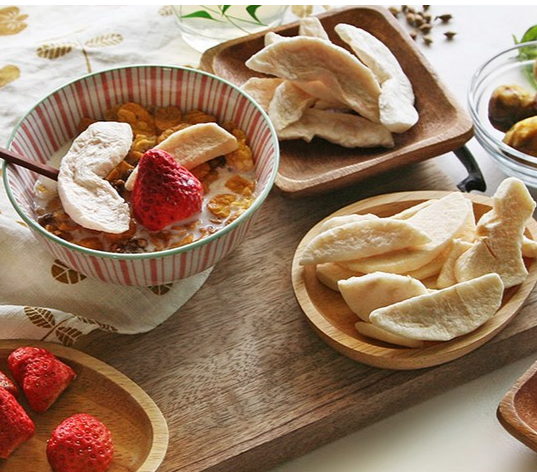 사과는 저장성이 뛰어나 쉽게 구할수 있어요.다만 제철 제품이 아니면 푸석푸서해지고 과즙도 부족하죠. 갈변이 쉽게일어나 바로 먹지않으면 색과 향이 떨어진다는 단점이 있지요. 그래도 이 맛난 사과를 포기할수는 없잖아요. 사과는 다른 과일칩보다 더 식감도 부드럽고 맛도 훨씬  부드러워요.