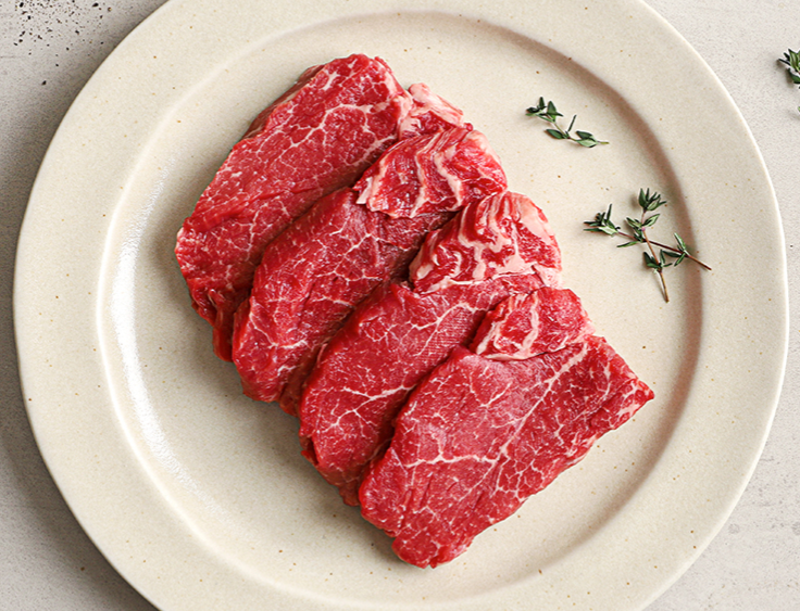 - 한우 채끝 (구이용) 250g x 2팩: 골고루 퍼진 마블링으로 쫄깃한 식감과 육즙이 매력적인 부위