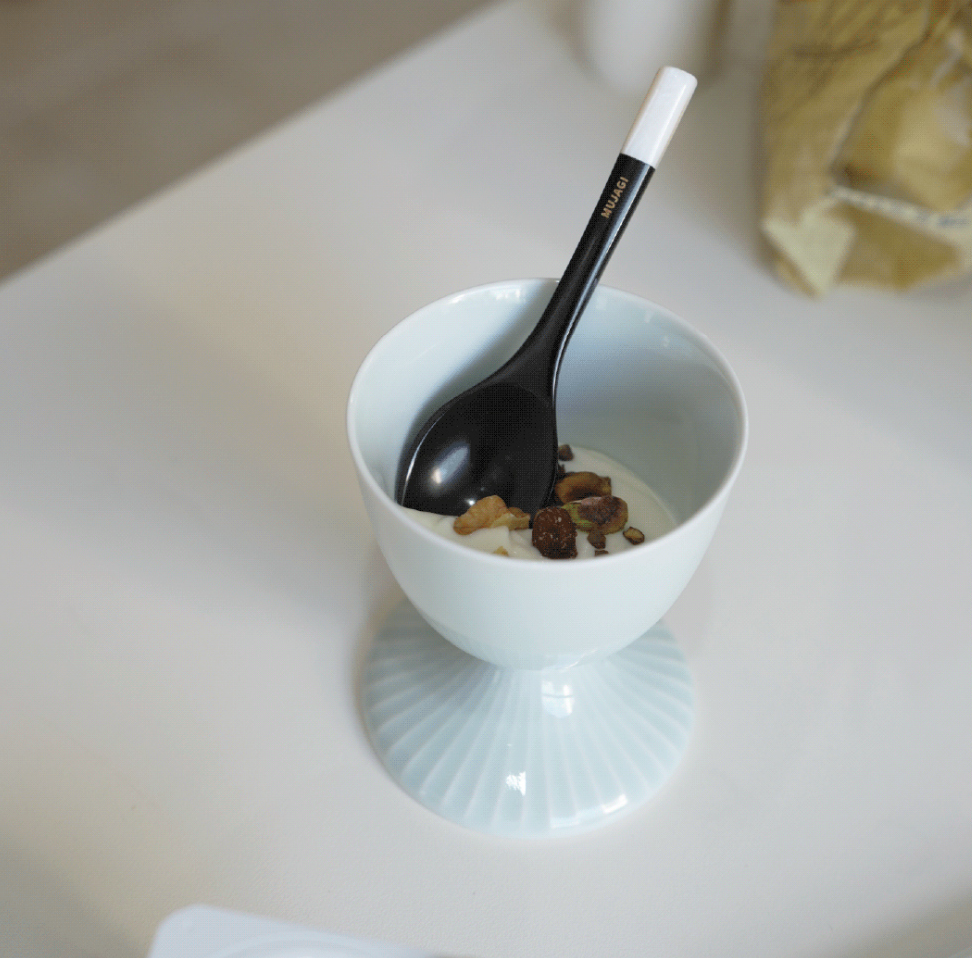 Mujagi bowls are made in Icheon, Gyeonggi-do, which is a representative pottery production area in Korea. The production process of mujagi is simple but special. First, clay is prepared to become the product with high-purity white clay that has been filtered of impurities. Then, it takes shape through the hands of mujagi artisans. After that, it is born as clean pottery through two firing procedures. The pottery by artist Sim Bo-geun, who uses flowers on the roadside as a motif, adds detail to the clear and plain white porcelain, filling the daily tabletop with small happiness.