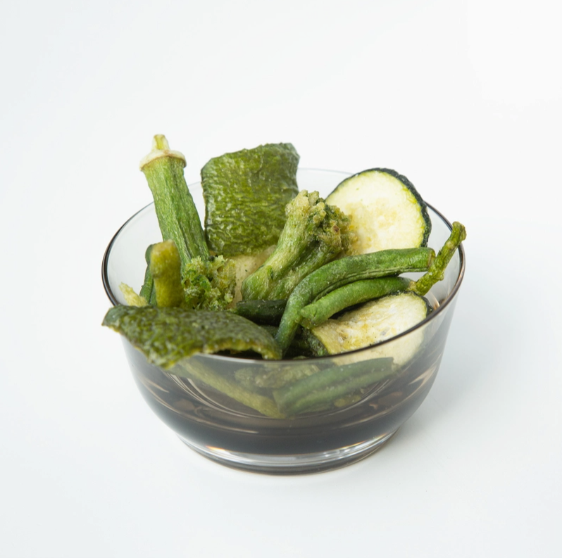 These aren’t mashed vegetables turned into powders or puffed shapes—but real vegetables, hand-sliced and crisped to perfection.