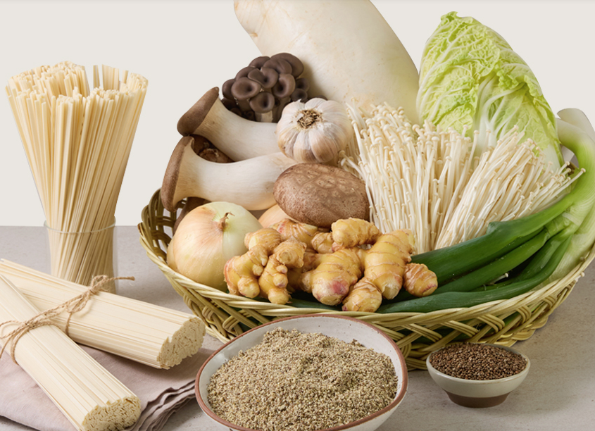 - Vegetable broth powder {radish extract powder (Korean), kelp extract powder (Korean), green onion juice powder (Korean), refined maltose, onion powder (Korean), mixed vegetable extract powder (Korean), sea salt (Korean), yeast extract ( Korean), fermented soybean extract (foreign country), rice bran powder (Korean), button mushroom powder (Korean), king oyster mushroom powder (Korean), enoki mushroom powder (Korean), oyster mushroom powder (Korean), freeze-dried shiitake mushrooms (Korean), Powder (Korean), freeze-dried garlic powder (Korean), freeze-dried ginger powder (Korean), freeze-dried burdock powder (Korean), freeze-dried lotus root powder (Korean), perilla seeds (Korean), glutinous rice (Korean), wheat flour (Australian ), refined salt (Korean)