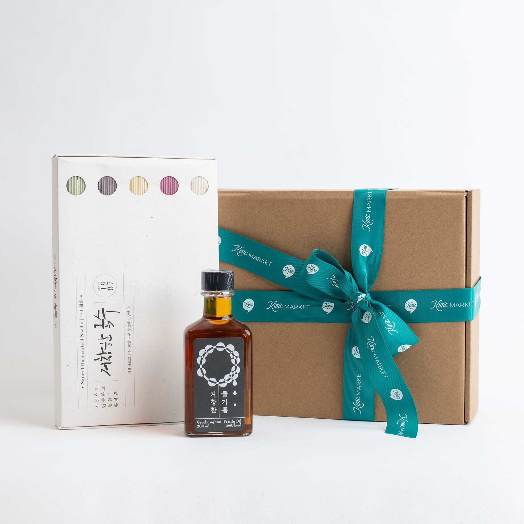 A thoughtful Chuseok gift set of Grand Noodle’s Five Colored Noodles and 100% Korean Perilla Oil—healthy, colorful, and crafted with care for a festive table.